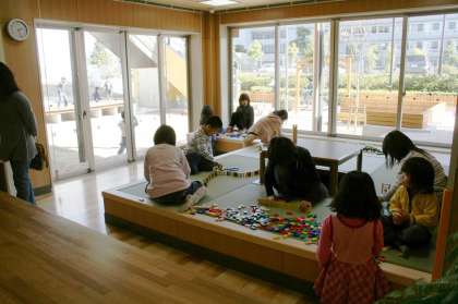 例えば写真のタタミコーナーは絵本を読んだり、ドミノ倒しをやったり、
