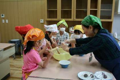 こどもたちは、「かしわもち」のつくりかたを教えてもらってみんなでつくりました。自分で作ったおもちは最高においしかったようです。来月は6月6日におかしづくりがあります皆さん参加してください。