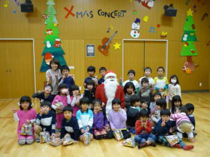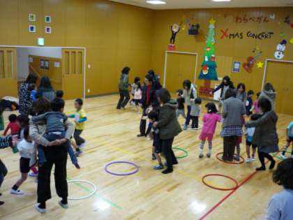 運動あそびクラブでは、お母さんも加わってゲームをしてクリスマス会を行いました。